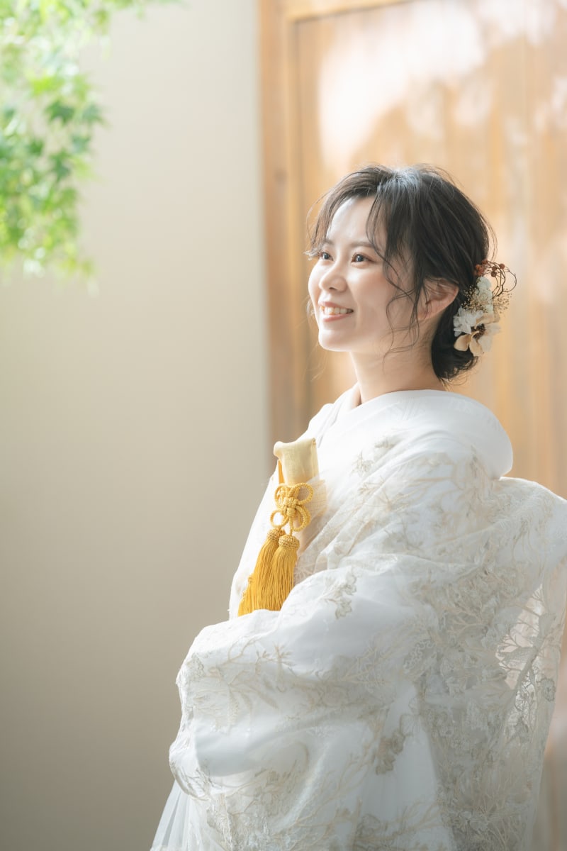 私のイチオシは、オーガンジーのお着物や白無垢にブーケを合わせるコーディネートです!お着物がシンプルなので、どんなお色のブーケでも可愛くまとまります!