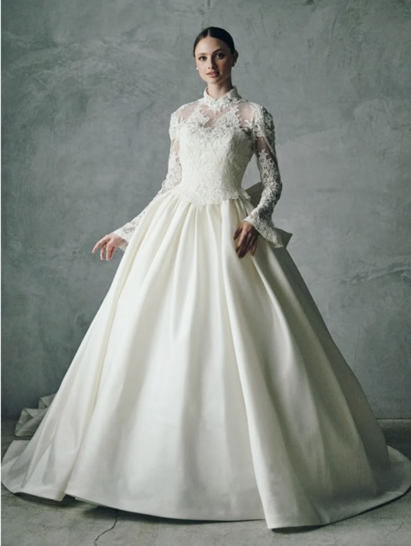 スッキリした胸元にボリュームのあるスカート部分が素敵です!