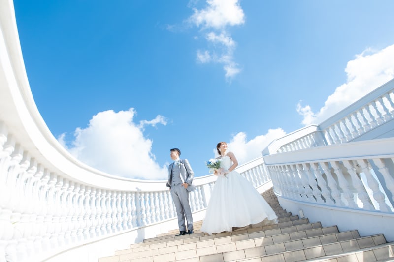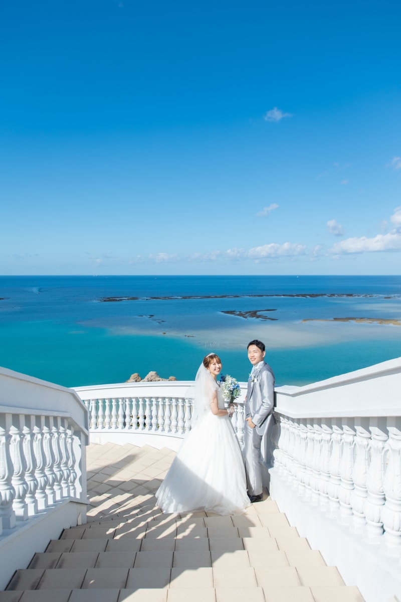 チャペルにはこんなに素敵な階段もあるので海や青空を背景に撮影もできます☺️