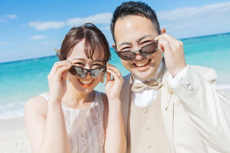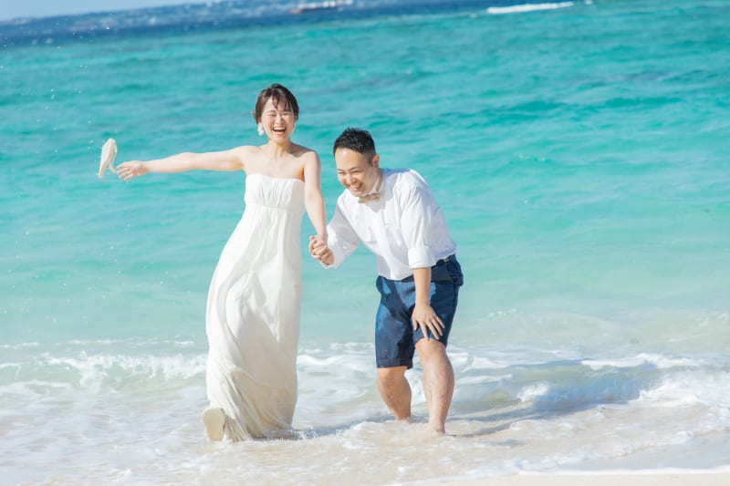 海にドレスとタキシードで入ることもできちゃいます^^