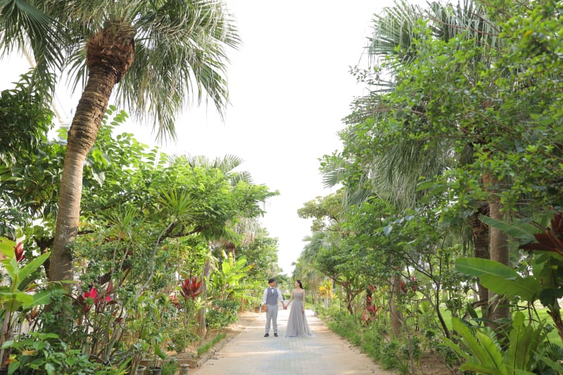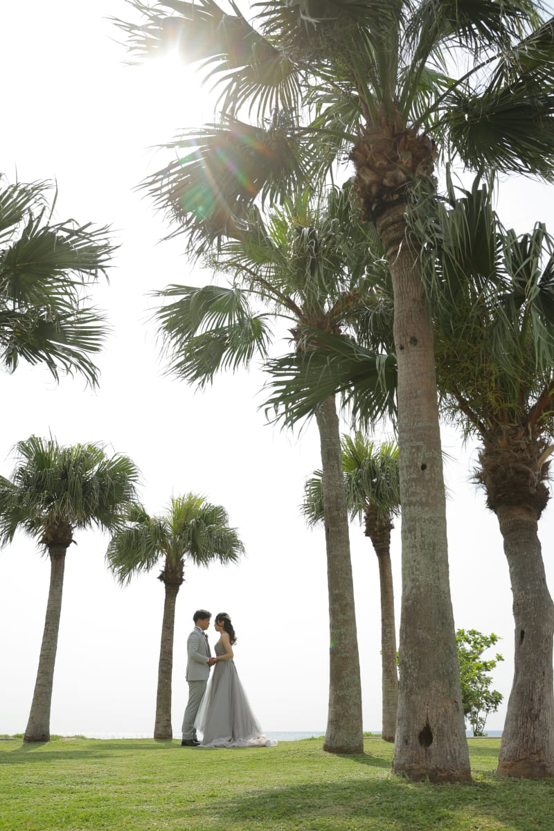 海はもちろん、ヤシの木や南国の木々とも一緒に撮影できて人気のプランです♪