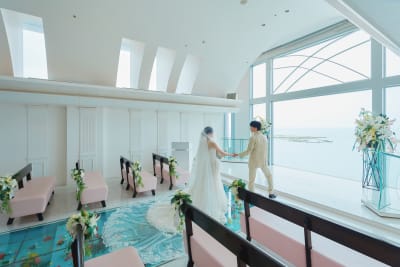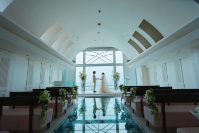 光に満ちた祭壇でゲストの前で永遠の誓いを立てましょう。