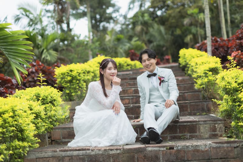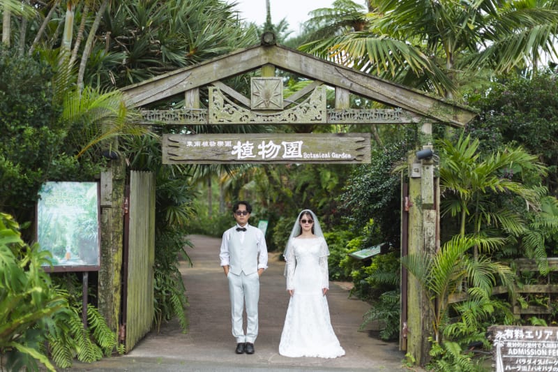 南国植物に囲まれて撮影するのは