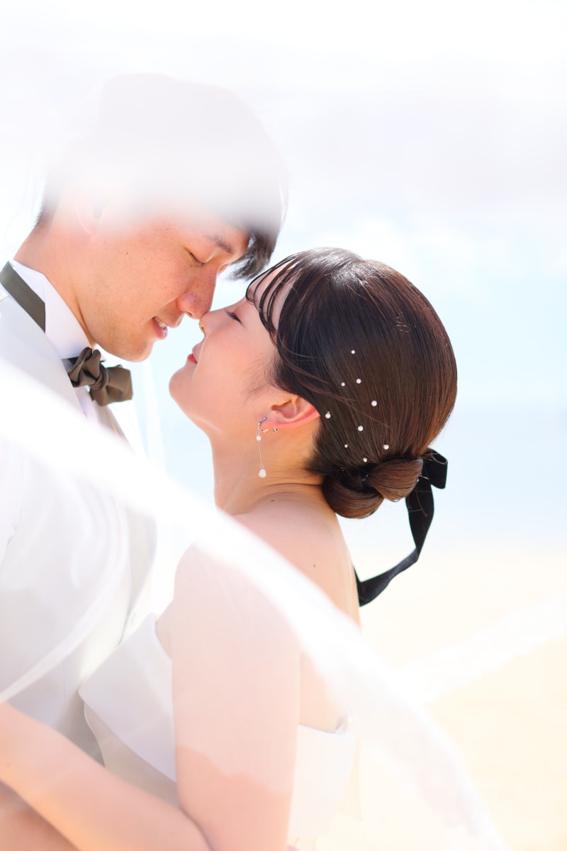 ビーチ撮影の時は、パール+ベロアリボンで少し可愛らしさを追加します!