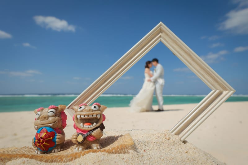 ビーチの上に額縁を置かせていただいて、お二人が額縁の中に入ってる風です^^