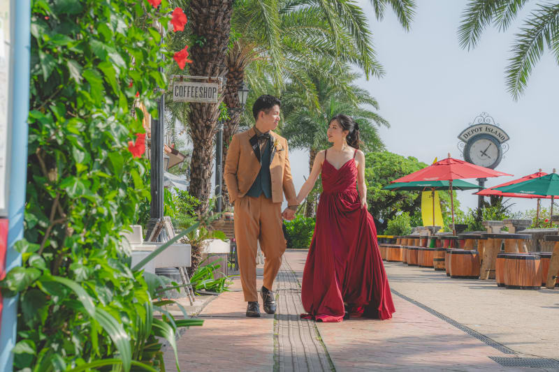 夏の沖縄で綺麗なビーチ+アメリカンビレッジで沖縄満喫プランで撮影いたしました!