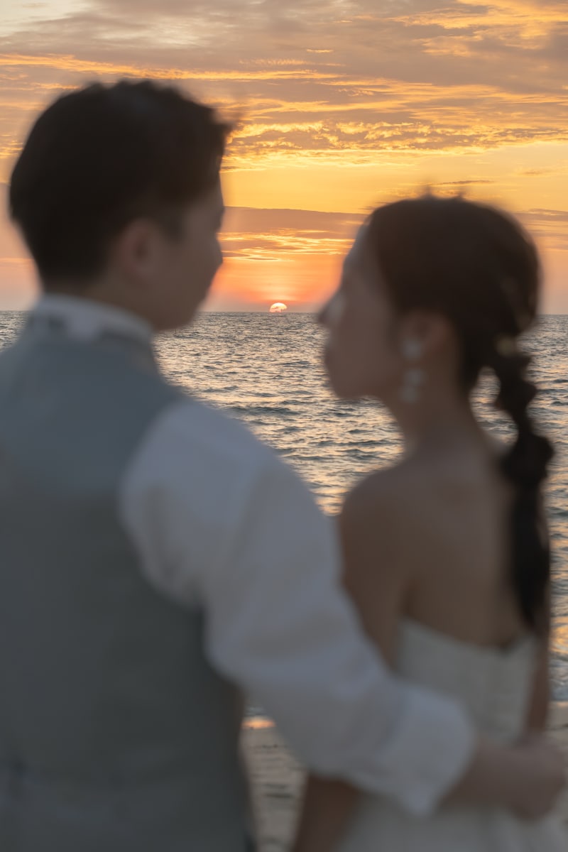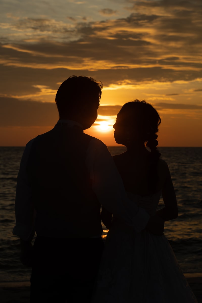 柔らかいオレンジの光に照らされいるお二人とっても素敵でした!