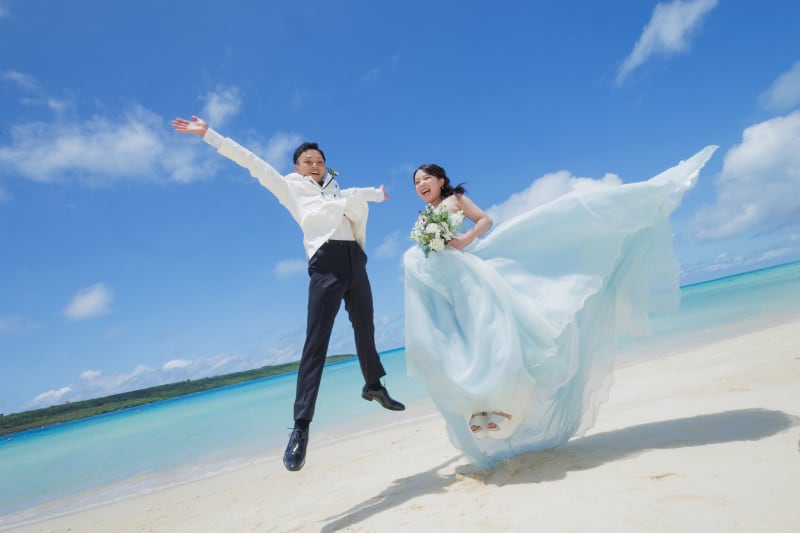 ジャンプをして宮古島のビーチを楽しんでくださったお二人でした!