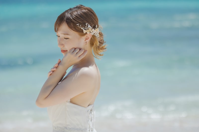 ビーチ撮影では、緑が綺麗な場所もあるので雰囲気を少し変えたこんなお写真も撮ることができます🌿