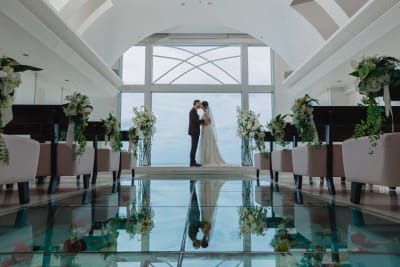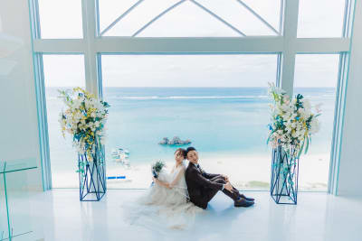まずは、沖縄の青い海を見下ろすサニーズウェディングのチャペル。