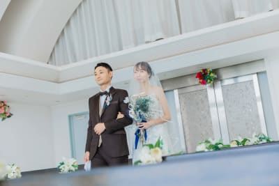 特に、柔らかな生地が特徴のウェディングドレスはスラっとしたご新婦様によくお似合いで、思わずため息が出る美しさでした。