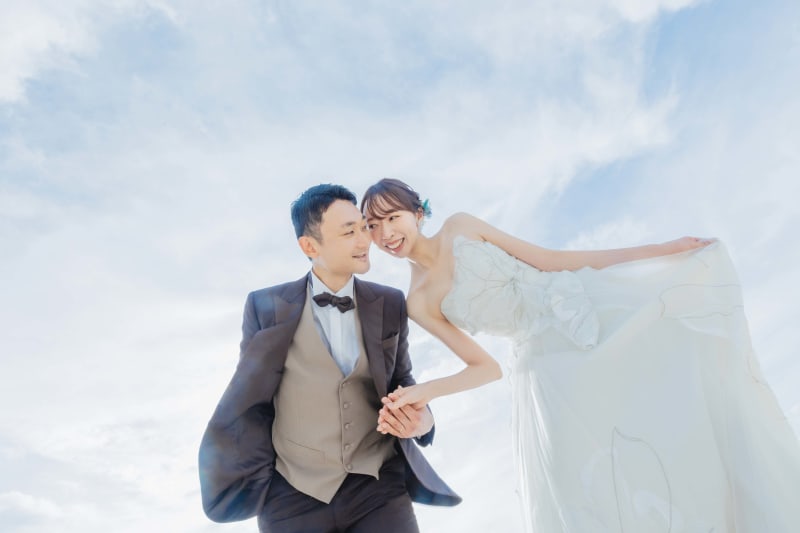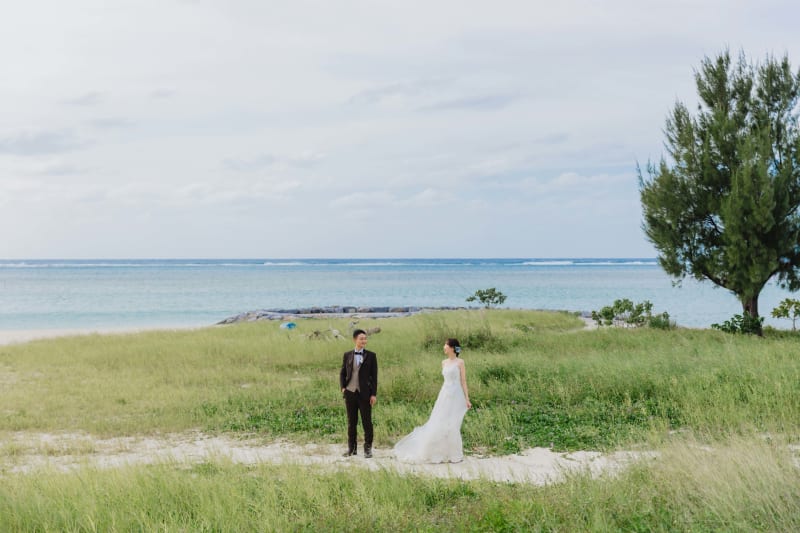 幸せあふれる沖縄の秋、北海道からお越しのおふたりとステキなビーチ&チャペルフォト