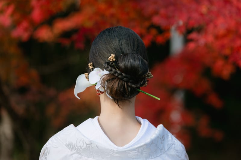 トップはツルッと、シニヨン部分はよく見ると三つ編みがアレンジされています。