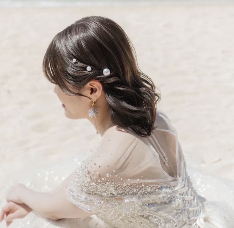 沖縄の海は風がかなり強いので、ガッチリキープしつつ艶感も保てるヘアセットに仕上げます!