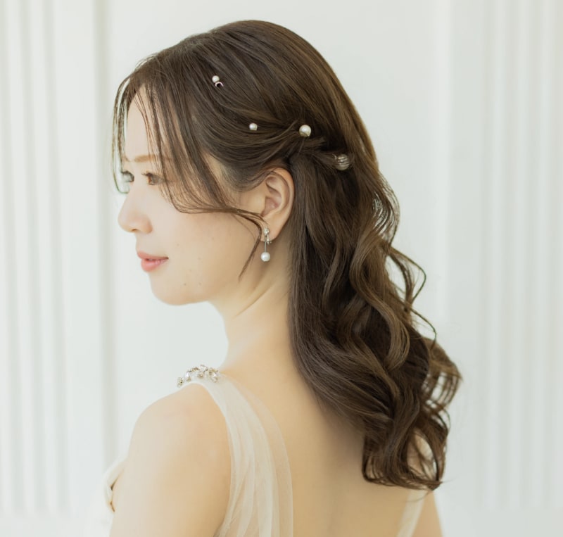 パールピンを使って、シンプルに大人可愛く仕上げました♪