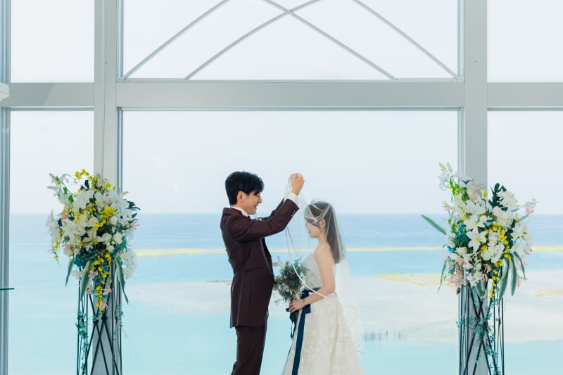 サニーズチャペルは、海が見えるガラス張りのチャペル。