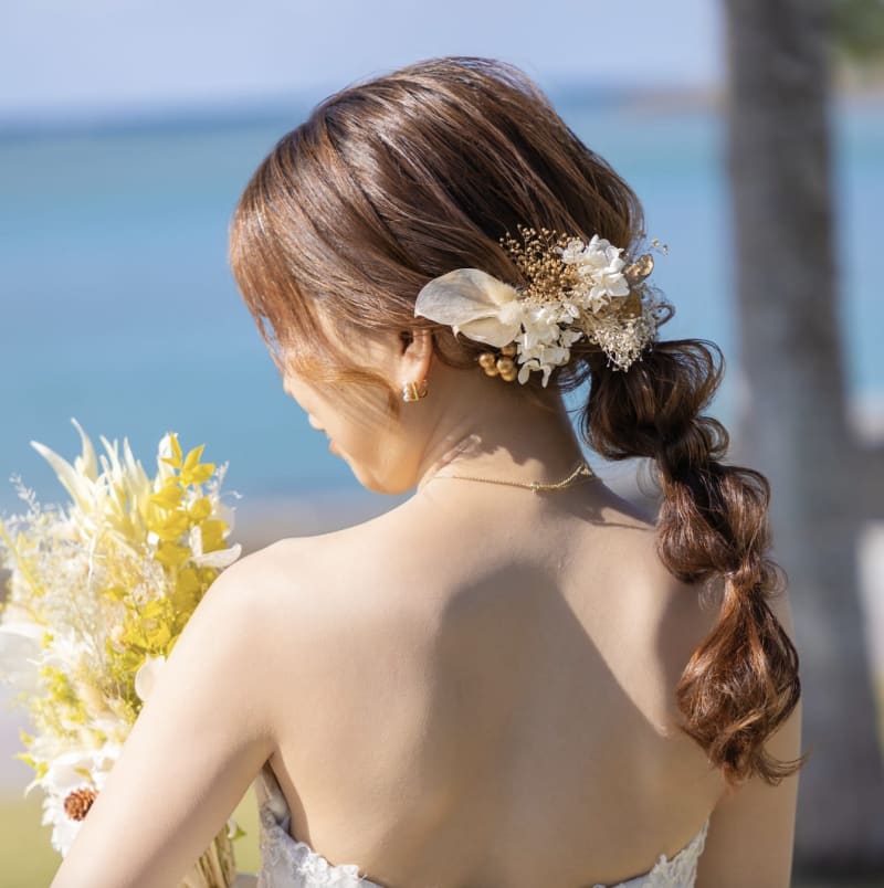 柔らかく、綺麗めなスタイルにクリーム×ゴールドのドライヘッドパーツでさらに柔らかい印象に♡