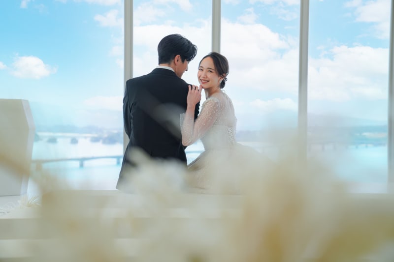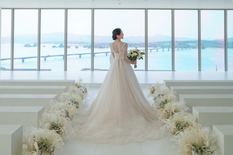 古宇利大橋が見える絶景を眺めながらバージンロードを進みます