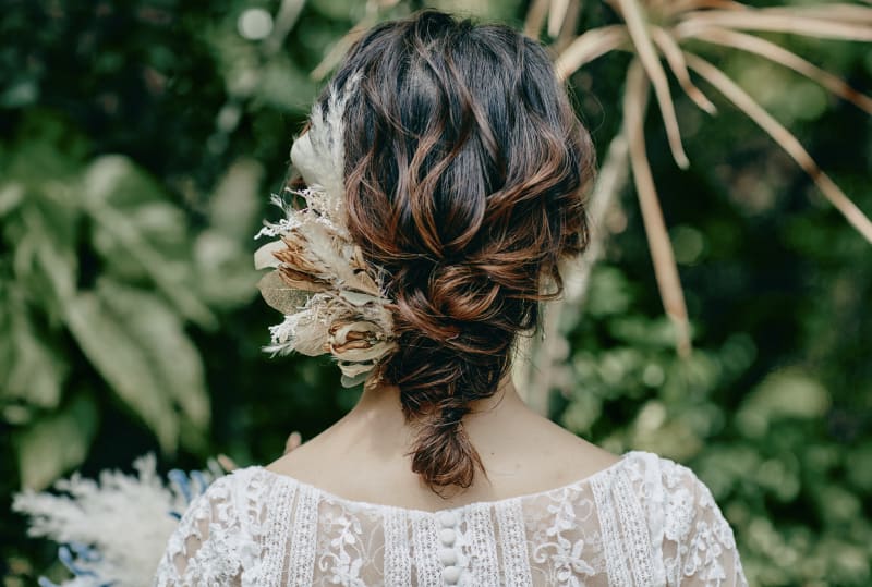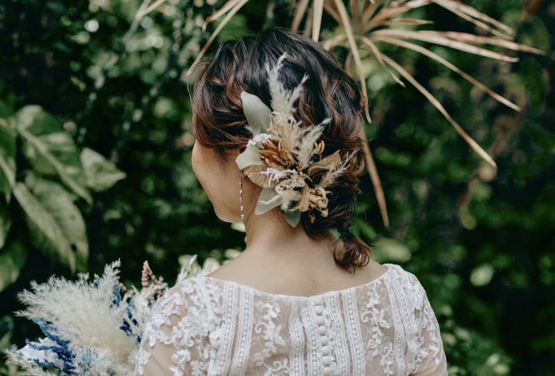 ヘッドパーツは、ビーチにも東南植物楽園にも合うようなドライフラワーで!