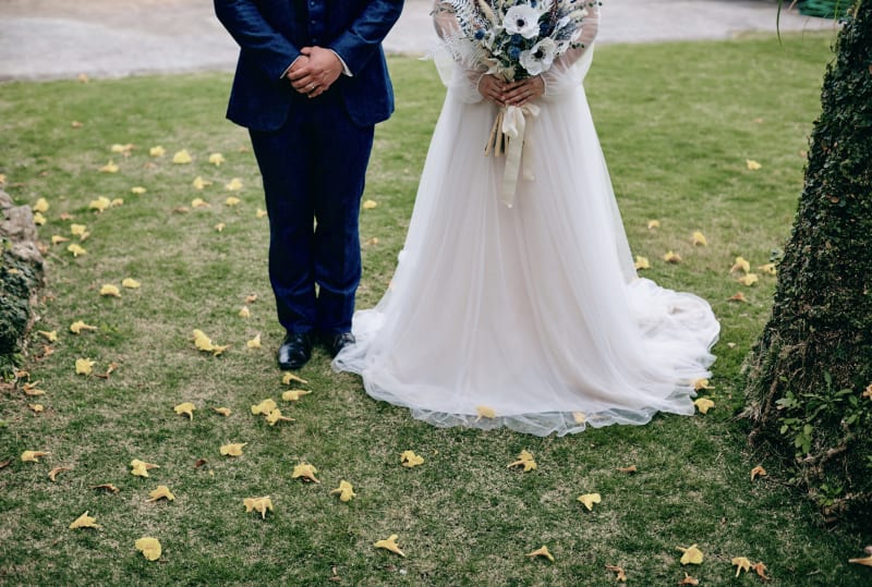 ご新婦様は、袖が取り外しできるスレンダードレスをチョイス!