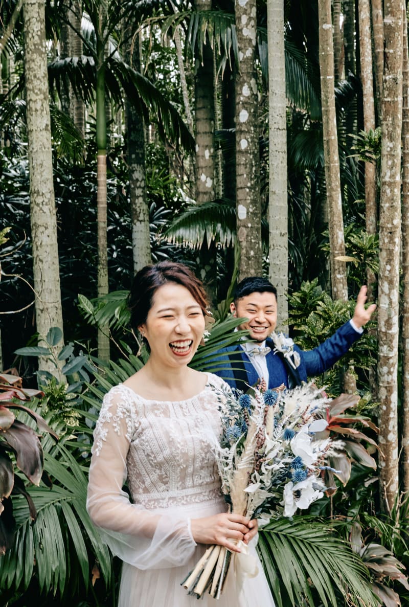 真面目に撮ってたのに、、、 ご新郎様が緑に馴染みすぎて面白くなっちゃったお2人^^!!!