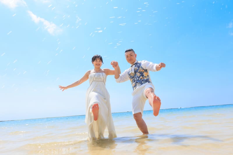 ウェディングフォトムービーや、衣装を来たまま海に入れる