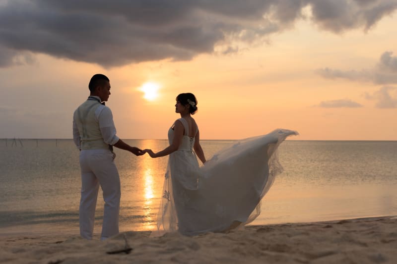 また、もう一つのオプションとしてサンセットを撮影をしました。夕日が少しずつ沈むのを見ながらビーチ撮影の時とは違い、ゆっくりとした時間の撮影のなかでおふたりの見れなかった大人っぽい表情も見れたことでサンセット撮影もとても会ってよかったと思えました。