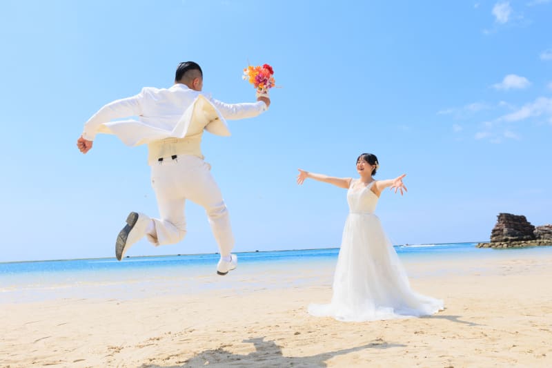 今回は、沖縄のアラハビーチで撮影した、ナチュラルな雰囲気が素敵なおふたりをご紹介します!