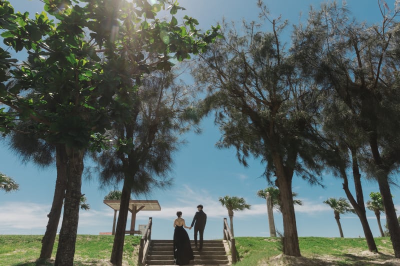 緑を撮影した後はいよいよビーチへ。ビーチに向かうお二人の後ろ姿も素敵です。