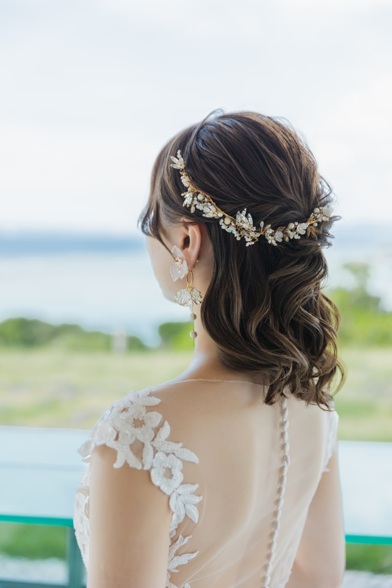 髪飾りもロケ地に合わせてビジューのキラキラタイプに♡