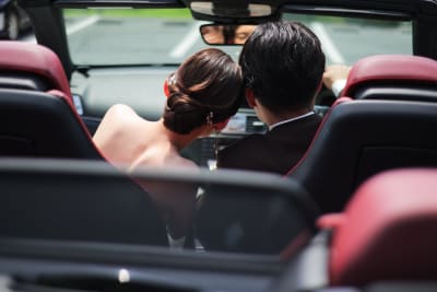 さらに、お二人はオープンカーをレンタルされていました!このおしゃれなアイテムのおかげで、ドラマチックかつ華やかな写真を撮ることができました。車の側での撮影や乗り込むシーンは特に映画のワンシーンのようで、とても印象的でした。