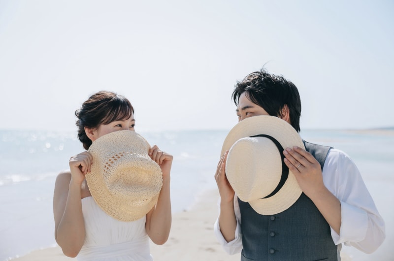 麦わら帽子で、二人のコーディネートのアクセントにも!