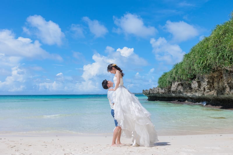 宮古島撮影こんにちは!本日は宮古島で撮影されたお二人のご紹介です。太陽に負けないぐらい明るいる笑顔のお二人でございます。