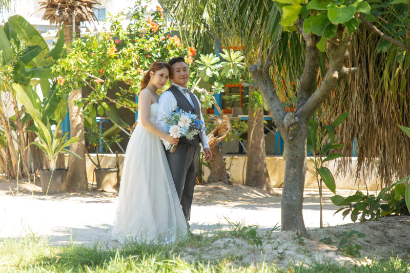少し歩けば、南国でしか出会えない植物たちが迎えてくれます。自然の中に溶け込むお二人、ただ立っているだけで絵になるなんて…おしゃれすぎます。