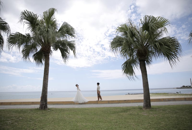 アラハビーチは公園のある広いビーチなので 緑もあったりお花もあったりと沖縄らしい写真を残せるのが魅力的です^^
