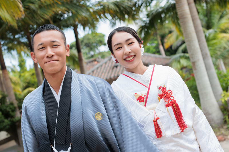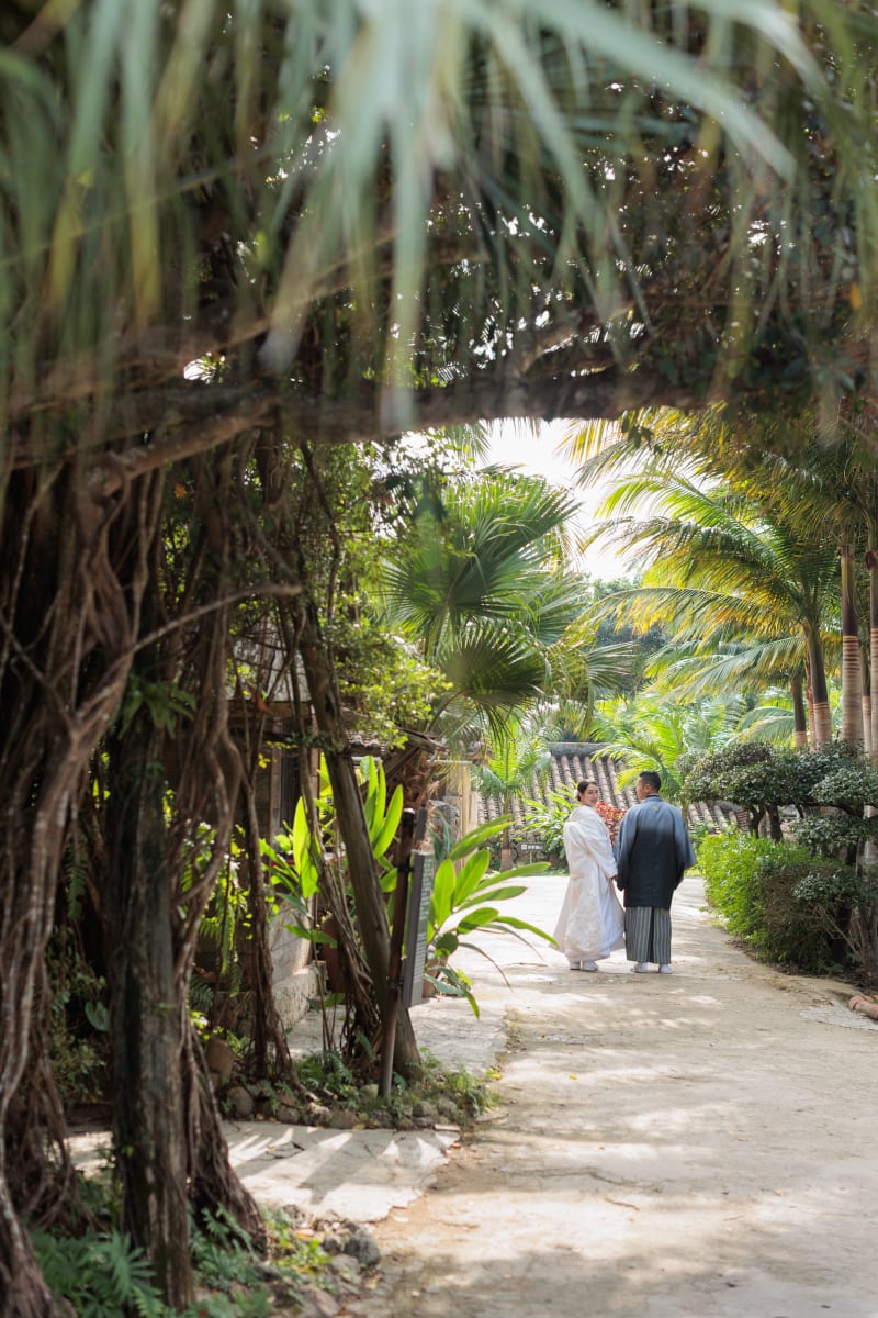 沖縄の冬は暖かく、和装にはぴったりの季節です。寒さに邪魔されることなく、ふたりの自然な笑顔をたっぷりと写真に収めることができました。