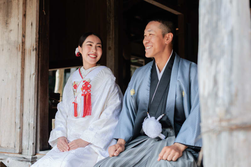 沖縄の歴史と文化が華やかな琉球村で、和装のウェディングフォトを撮影しました。