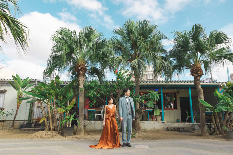 沖縄らしい椰子の木もえれて、グリーンのエリアでも撮影できます。