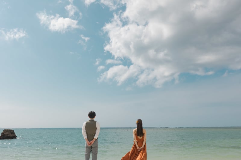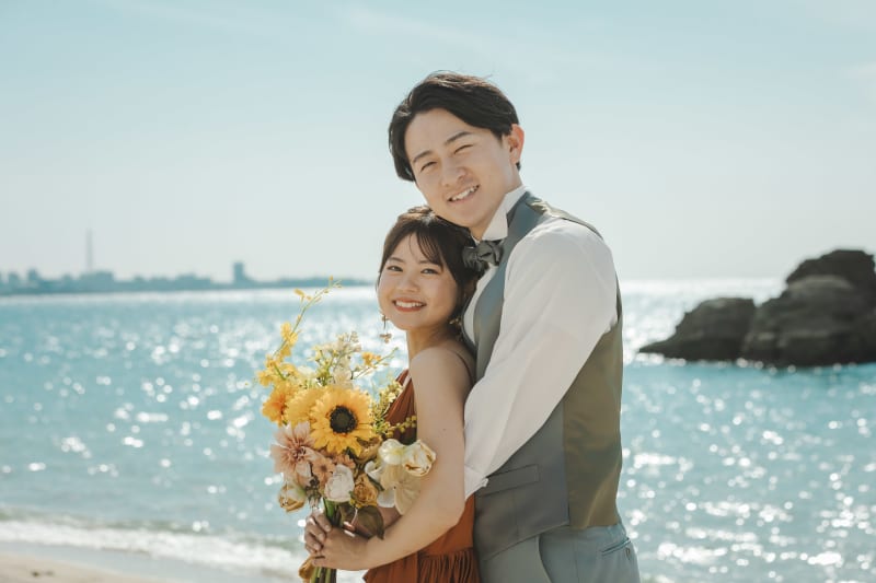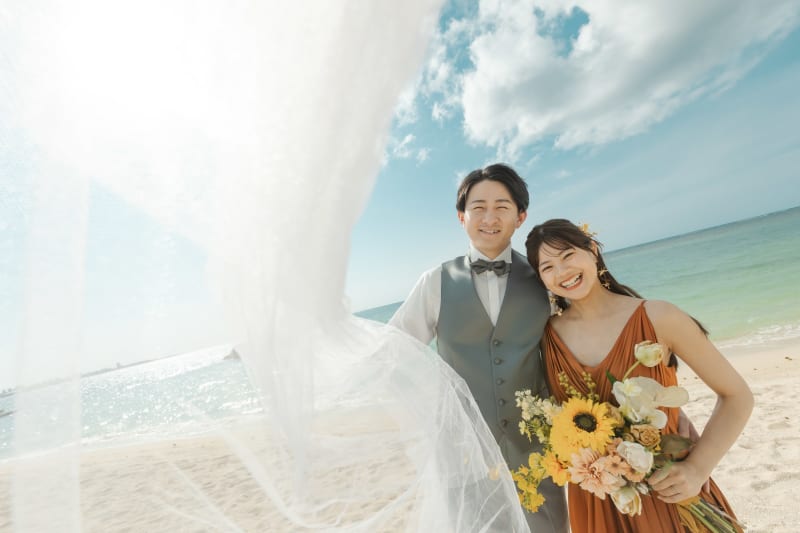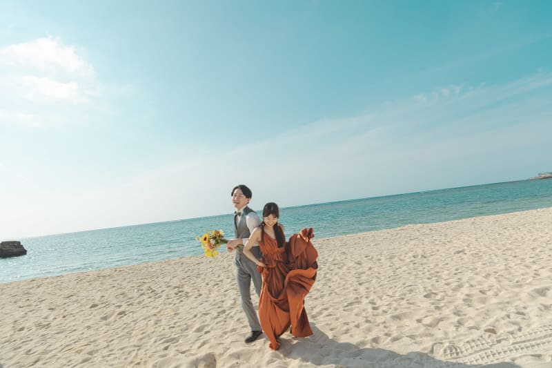 お二人のご希望もあり、ビーチは少しカジュアルな撮影で楽しんでもらいました。