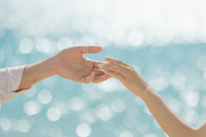 海のキラキラと手にフォーカスして、お二人のお顔が写っていないイメージカットもしっかり撮影します。