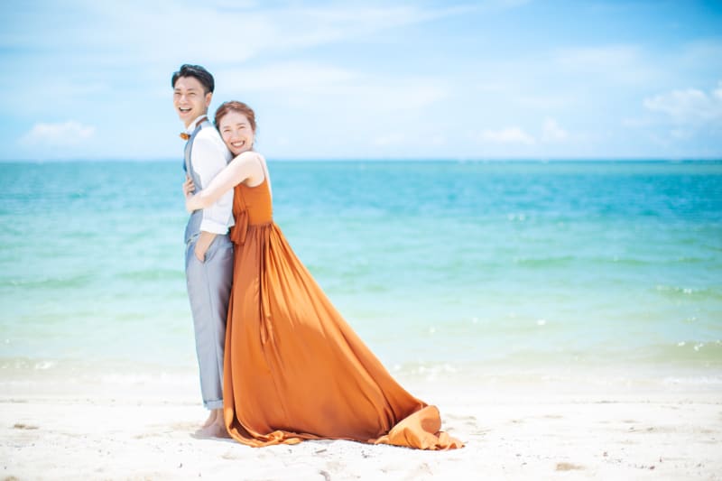 青い空と青い海に映えるドレスです^^