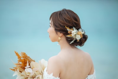 選んで頂いたブーケに合わせてヘッドパーツもドライフラワーをチョイス♡