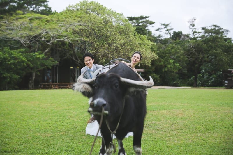 ここでは緑いっぱいの中で写真を残すことができます♪ 水牛さんと会えることも、、、♪