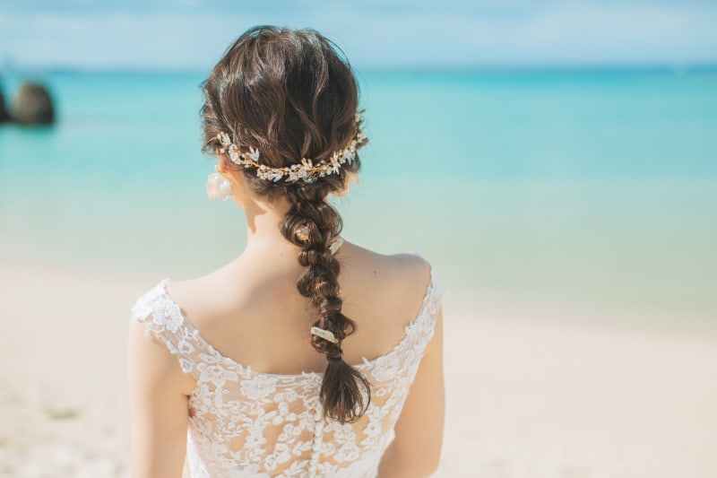 ヘアはアクセサリーを組み合わせて華やかな編み下ろしでまとめました!