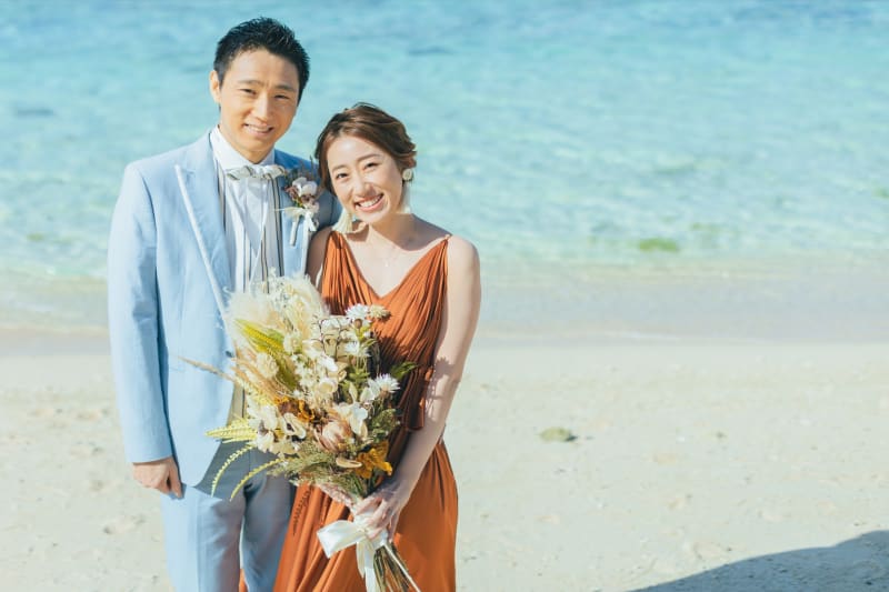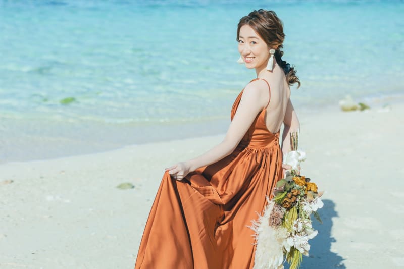 沖縄の海に、このテラコッタのドレスが映えますねっ♪