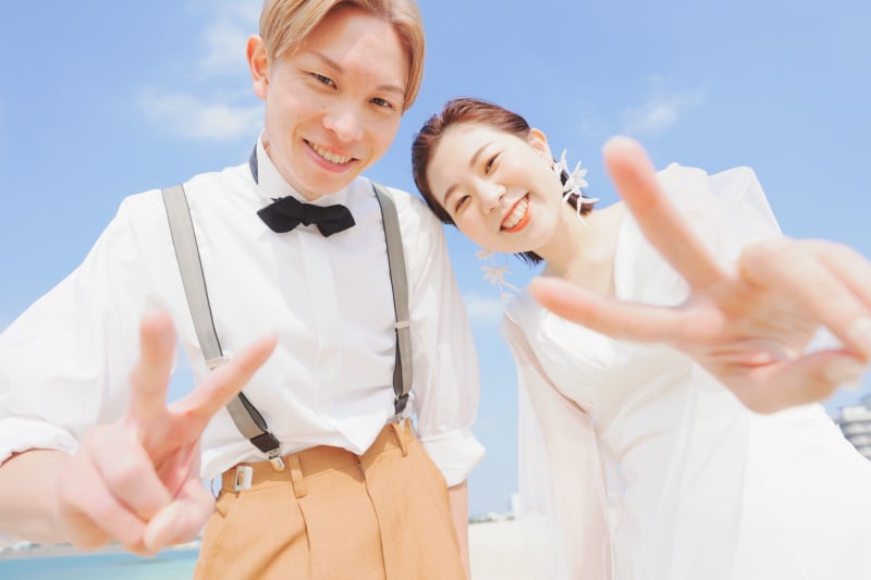 海でも爽やかなお2人です♪