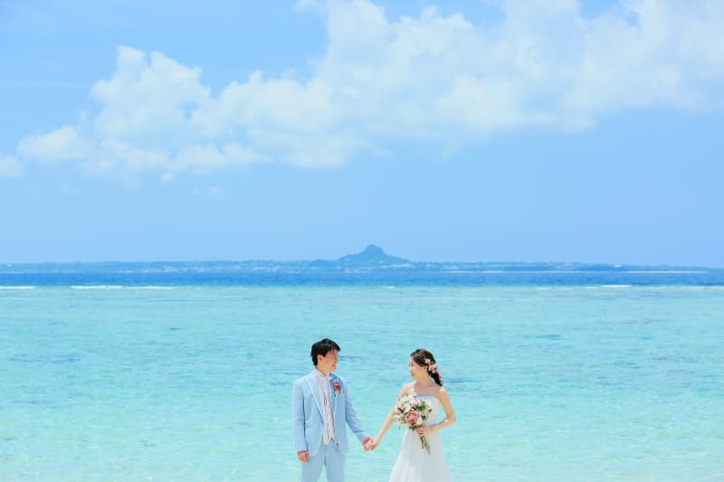 後ろに見える島は、『伊江島(イエジマ)』です^^