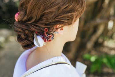 ドライフラワーとまん丸かわいい和飾りを混ぜておつけしました♪