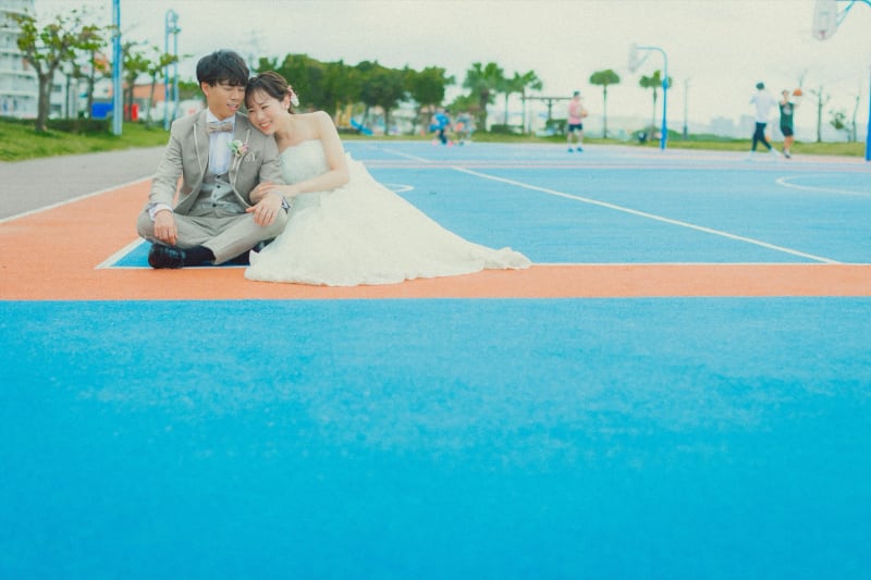 ウエディングドレスで、バスケットコートでの撮影♪可愛くないですか?(≧▽≦)☆