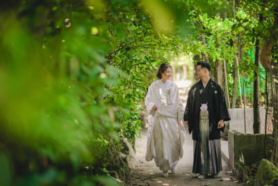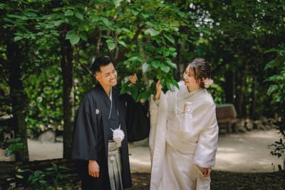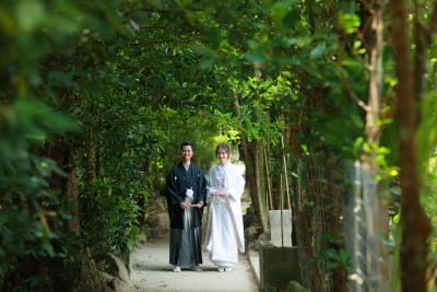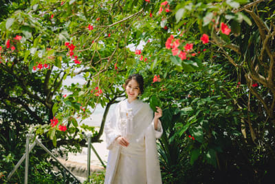 ロケ地:フクギ並木(和装) 瀬底ビーチ(洋装)